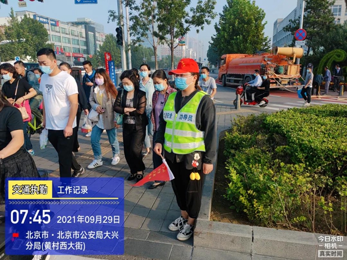 早晨7到9點是上班的高峰期,黃村西大街地鐵站路口來往的行人和車輛都很多,經過交警的培訓指導,華騰化工團員青年欣然值守在斑馬線旁,大家不斷提醒行人要走斑馬線,提醒車輛要禮讓行人,并攙扶行走不便的大爺大媽過馬路。
