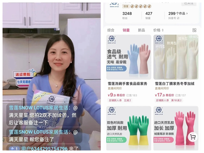 從綠幕直播間搬到了充滿生活氣息的“廚房”,在新的場景中,華騰橡塑公司手套產品的性能,更好、更直觀地展示給了消費者。