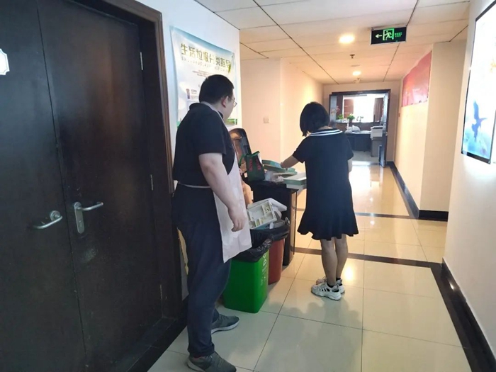 為了確保垃圾分類工作有效開展,化研院在辦公區域配備了足夠的垃圾分類設施并合理分布,并在周邊設置分類標識,指導員工精準投放垃圾。同時也定時進行清潔和檢查,保證垃圾分類設施不缺失、不損壞、外觀整潔,做到周圍沒有衛生死角。