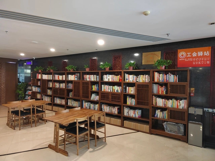 隨后,張金亮一行調(diào)研了東方賓館的全國職工書屋,并和相關(guān)企業(yè)與部門就班組建設(shè)、職工安全培訓進行了座談。
