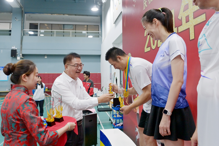 9月24日,北京化工集團2024年“北化杯”羽毛球決賽,在來自各單位的11支代表隊歷時一周激烈角逐后隆重舉行。北京化工集團黨委書記、董事長陳宇到場為選手們加油助威,并為獲獎選手頒獎。