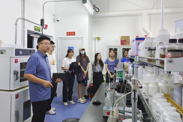 隨后,在總工程師崔正的帶領(lǐng)下,師生參觀了華騰新材辦公場所、產(chǎn)品陳列、實(shí)驗(yàn)室等,促進(jìn)了學(xué)生們對(duì)理論知識(shí)與生產(chǎn)應(yīng)用相結(jié)合的感知,也對(duì)實(shí)驗(yàn)室安全管理有了更加直觀的認(rèn)識(shí)。