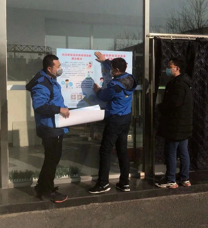 2月3日,北搪商務大廈商務中心的全體員工,在負責人朱娜的帶領下,檢查并協助物業管理公司對辦公區域進行消毒和清潔,對12層以下的客戶進行摸底排查,挨家挨戶進行在崗人數調查并記錄上報事業部,在暫時無人辦公的客戶門上張貼關于做好疫情防控的緊急通知,同時以電話或微信方式,將通知有關內容傳達給客戶,提示加強對去往疫情高發地區及接觸過疫情高發區的員工的教育,做好相應隔離防護措施,隨時溝通各自單位的防疫工作的最新動態。