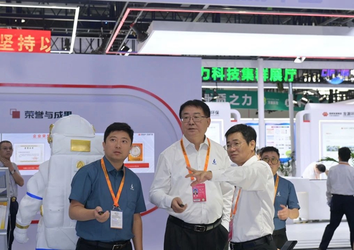 9月13日,北京化工集團(tuán)領(lǐng)導(dǎo)班子成員和高管人員專(zhuān)程來(lái)到集團(tuán)展臺(tái)參觀。黨委書(shū)記、董事長(zhǎng)陳宇,黨委副書(shū)記、董事、總經(jīng)理?xiàng)钚褫x一行首先駐足于“北化方案”“北化模式”“北化服務(wù)”三個(gè)展屏前觀看;隨后參觀了集團(tuán)科技服務(wù)、都市化工、高端制造最新發(fā)展成果。陳宇、楊旭輝一行還饒有興致地來(lái)到文物修復(fù)展區(qū),“北化市集”抖音直播間展區(qū),詢問(wèn)有關(guān)文物修復(fù)專(zhuān)業(yè)知識(shí)、詢問(wèn)直播銷(xiāo)售情況,當(dāng)了解到兩個(gè)展區(qū)都是清一色的90后、00后在現(xiàn)場(chǎng)工作時(shí),陳宇、楊旭輝一行對(duì)他們給予高度肯定,并鼓勵(lì)他們?cè)?ldquo;三個(gè)北化”引領(lǐng)下,繼續(xù)發(fā)揮年輕人應(yīng)有的拼勁、闖勁,為集團(tuán)發(fā)展也為實(shí)現(xiàn)個(gè)人價(jià)值做出新的更大貢獻(xiàn)。