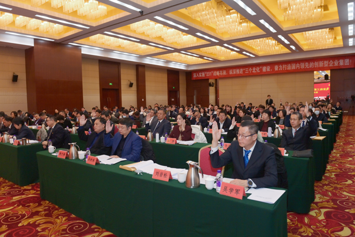 楊旭輝以《深入實(shí)施“231”戰(zhàn)略布局 縱深推進(jìn)“三個(gè)北化”建設(shè) 奮力打造國(guó)內(nèi)領(lǐng)先的創(chuàng)新型企業(yè)集團(tuán)》為題作工作報(bào)告。