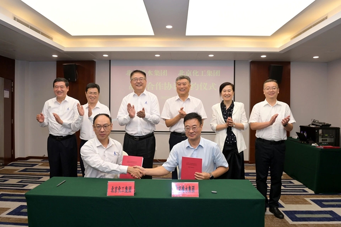 7月15日,北京化工集團(tuán)與北京排水集團(tuán)簽署戰(zhàn)略合作協(xié)議。化工集團(tuán)黨委書記、董事長(zhǎng)陳宇,黨委副書記、董事、總經(jīng)理?xiàng)钚褫x,黨委常委、副總經(jīng)理孫紹剛,副總經(jīng)理張榮寰;排水集團(tuán)黨委書記、董事長(zhǎng)張建新,黨委副書記、職工董事、工會(huì)主席王蘭,黨委委員、副總經(jīng)理張志淵出席簽約儀式。