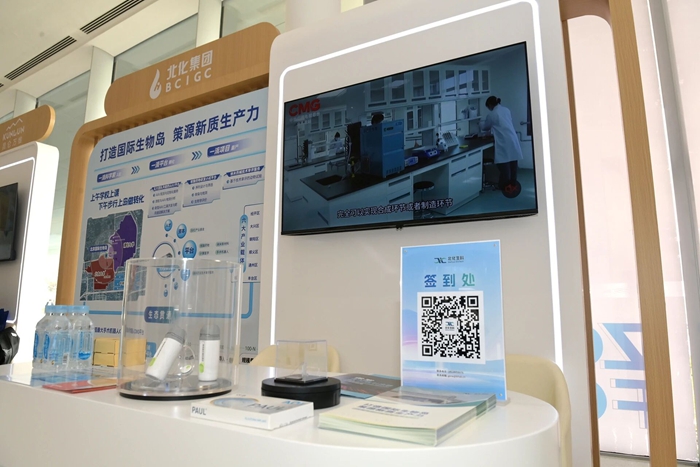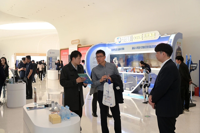 在集團展位,陳宇詳細了解展位布展、成果展示、現場對接等情況。陳宇強調,北京國際生物島是北京化工集團第二主業和生物醫藥戰略方向落地實施的重要平臺,更是服務北京國際科技創新中心建設,服務生物醫藥“新興支柱產業”發展、促進科技創新與產業創新深度融合的重要載體。陳宇勉勵北化生科參展團隊要充分借助中關村論壇這一國際性平臺,展現北化生物醫藥產業新形象、新實力,為集團高質量發展展現北化價值。