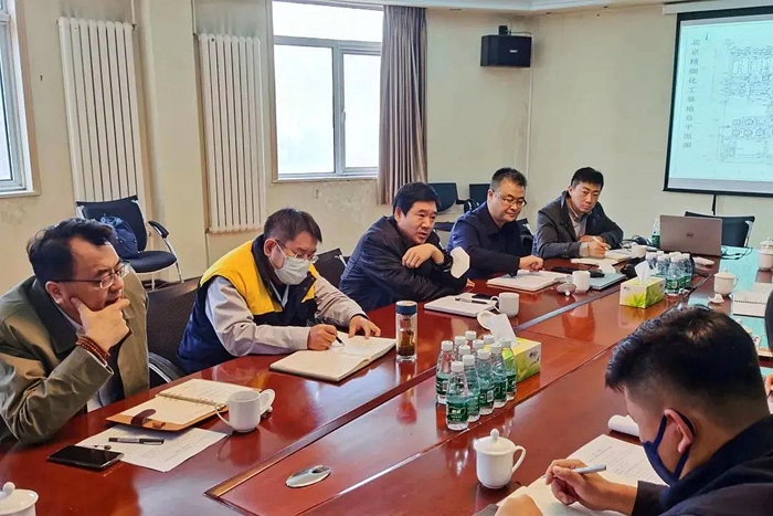 會上,相關6家參建單位齊聚一堂,就推進項目開工前準備工作進行安排部署。相關部室和單位負責人介紹了項目進展情況及開工前準備工作,討論并完善了下一步工作計劃。集團都市化工產業部針對施工安全及防疫保障措施、施工單位進場安排、施工組織計劃、設計交底會議等事項作出了具體安排。