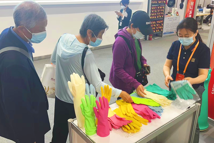 在銷售商品,感知市場信息的同時,華騰橡塑不忘借助這一次難得的市場宣傳機會開拓市場渠道。在參展中,華騰橡塑以二維碼、宣傳冊等線上線下宣傳手段,大力宣傳公司的京東雪蓮手套旗艦店、天貓雪蓮旗艦店和抖音“雪蓮SNOW LOTUS家居生活”企業店鋪,相關網店關注度得到明顯提升。