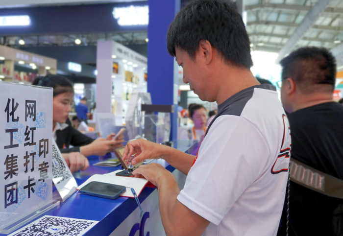 網紅打卡印章,是此次參展的又一亮點,集團為此專門制作了有集團名稱樓宇的印章。“4號館,北化集團,3免(3個印章、免費)”的服貿會攻略已在“小紅書”上傳開,人們紛至沓來,在關注集團微信公眾號后,將“北京化工集團”印在自己的本上,讓北京化工在潛移默化中傳播。
