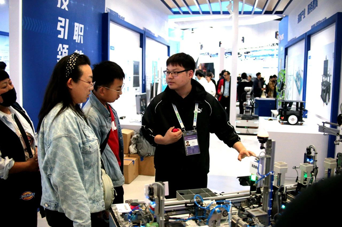 在展區現場,技師學院自主培養的世界技能大賽金牌選手,結合自身成長經歷,向觀眾講述“技能成才技能報國故事”,展現了青年高技能人才傳承匠心、為國爭光的卓越風采。